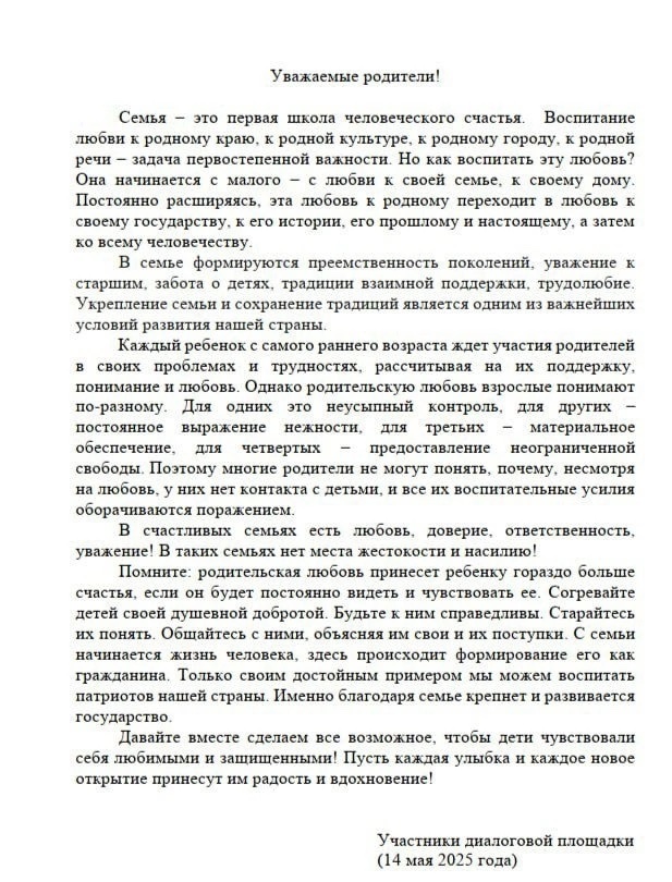 По её итогам участниками было принято обращение к родителям.